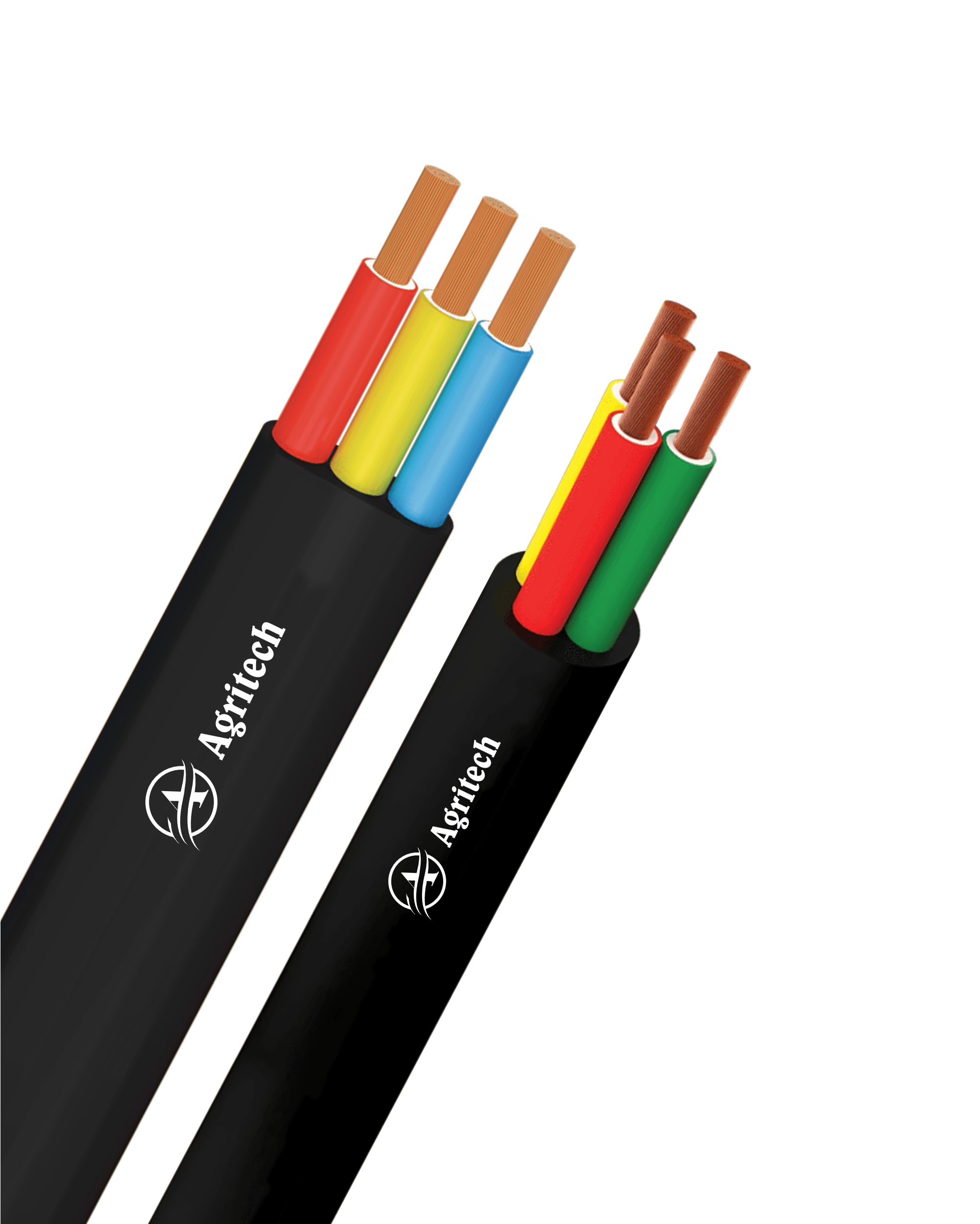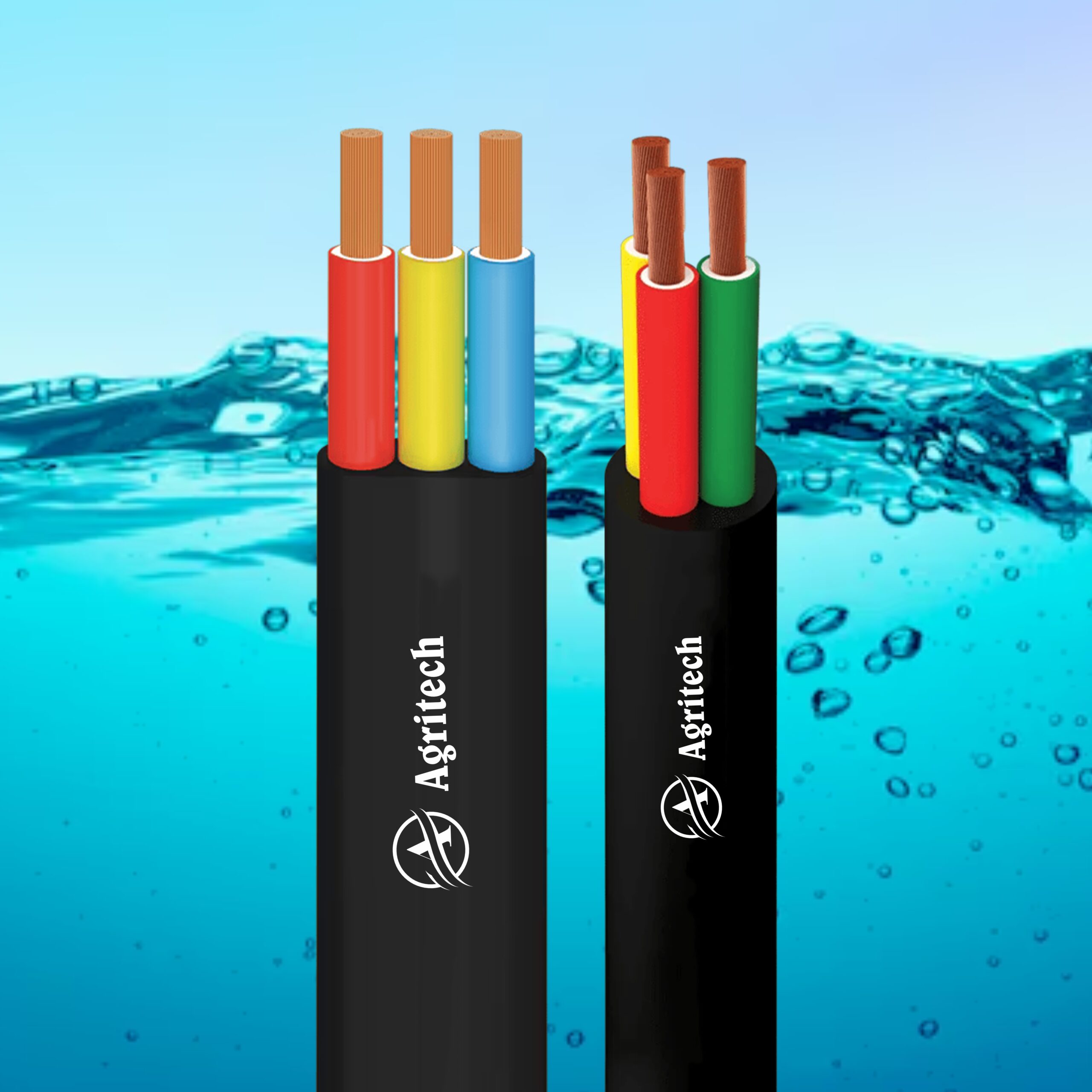 Built to perform in demanding underwater environments, Agritech 3 Core Submersible Cables feature high-purity copper conductors for superior electrical conductivity and reduced energy loss. The cables are double insulated with a robust PVC jacket, offering resistance to moisture, oil, and abrasion. With a heat-resistant outer coating and flexible structure, they adapt easily to movement without cracking or breaking. Color-coded cores simplify the installation process, making them the ideal choice for deep well submersible pump connections that demand both reliability and safety.