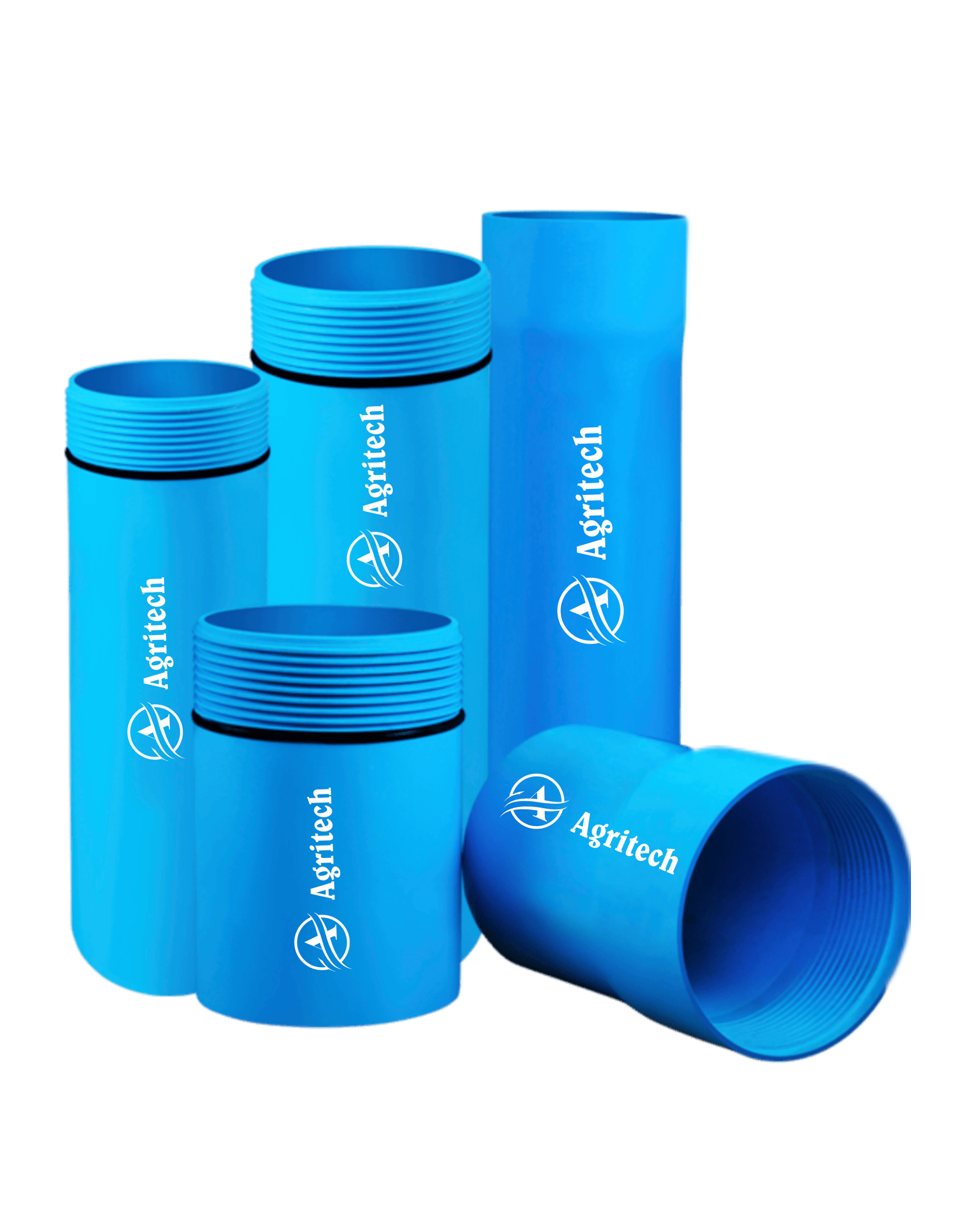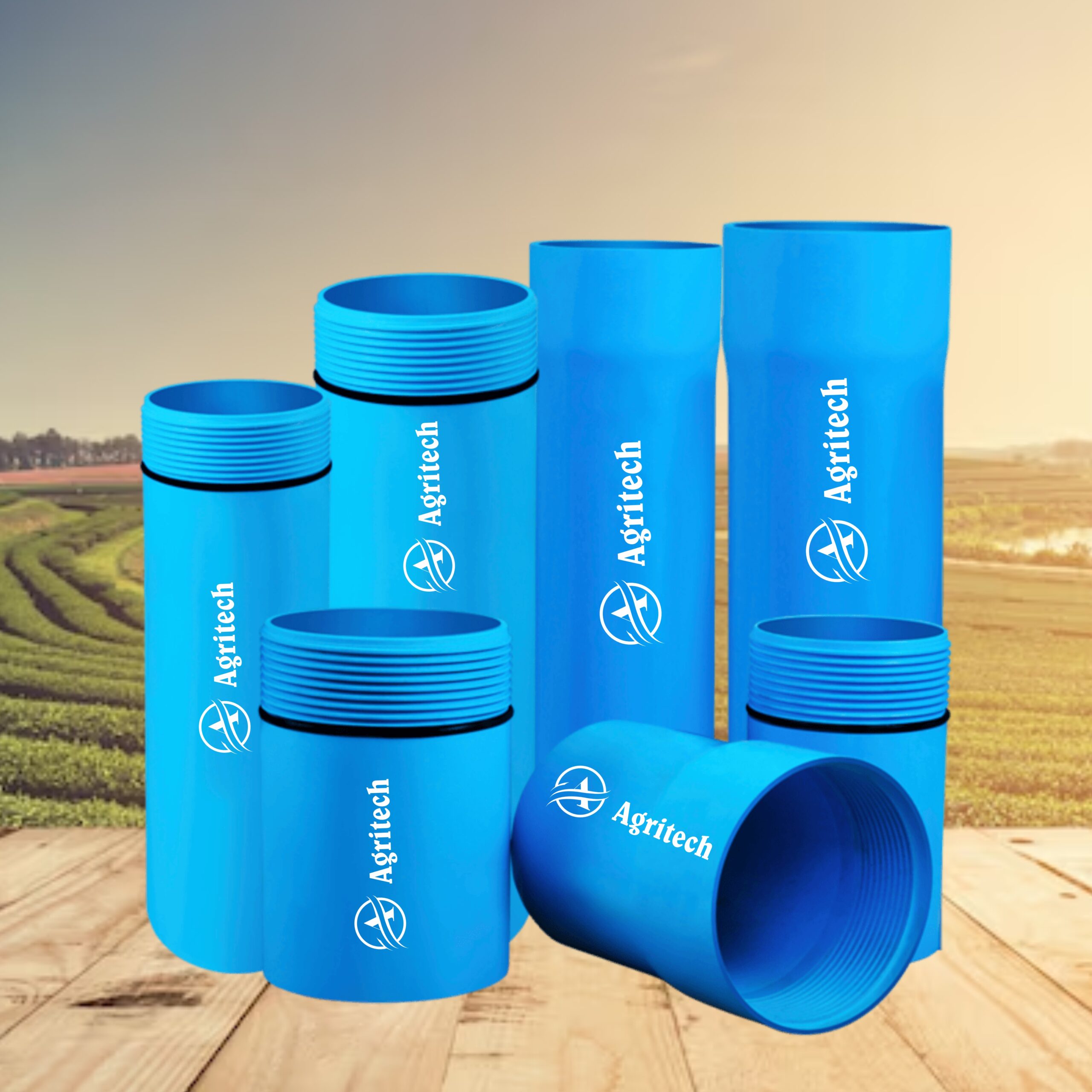 Agritech uPVC Casing Pipes offer superior strength and protection for borewell structures. Designed with a rigid and durable body, these pipes withstand soil pressure and are ideal for casing in groundwater extraction systems. The smooth internal bore enhances water yield, while their chemical and corrosion resistance ensures long-lasting performance. Available in CM, CS, and plain variants with precision slotted options, these pipes cater to both domestic and industrial applications. Manufactured to comply with BIS standards, AgriGuard™ uPVC Casing Pipes offer superior strength and protection for borewell structures. Designed with a rigid and durable body, these pipes withstand soil pressure and are ideal for casing in groundwater extraction systems. The smooth internal bore enhances water yield, while their chemical and corrosion resistance ensures long-lasting performance. Available in CM, CS, and plain variants with precision slotted options, these pipes cater to both domestic and industrial applications. Manufactured to comply with BIS standards, Agritech promises reliable, maintenance-free performance. promises reliable, maintenance-free performance.
